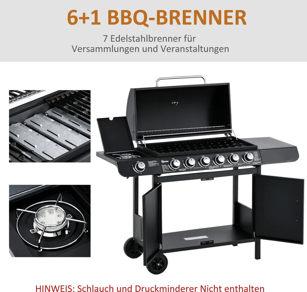Schreibe die erste Rezension für „Outsunny Gasgrill BBQ Grillwagen Mit 6 Brennern 1 Seitenbrenner Schrank Multifunktion Metall Schwarz 135 X 50 X 100 Cm“ Antwort abbrechen
