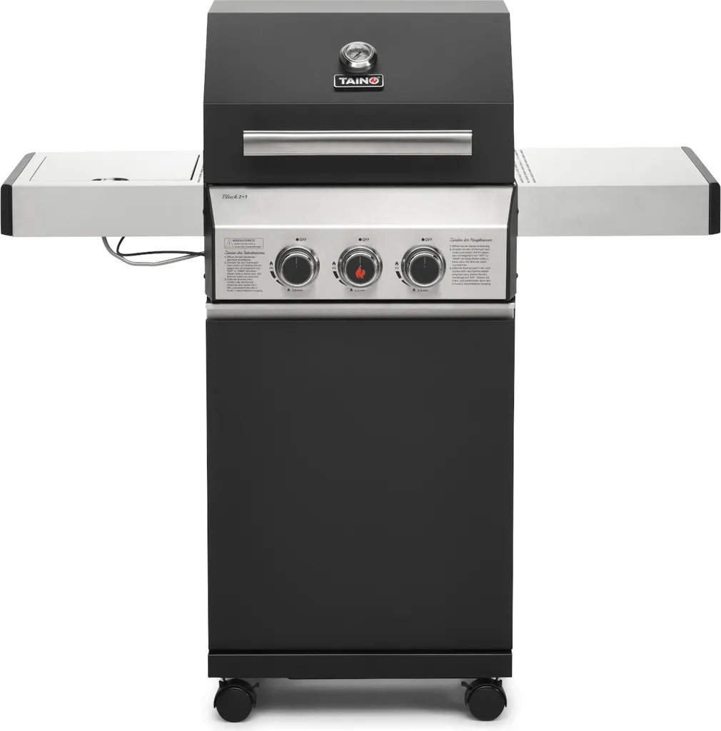 TAINO BASIC 6+1 Gasgrill Mit Seitenbrenner 6 Brenner Edelstahl-Brenner Grillwagen BBQ Schwarz