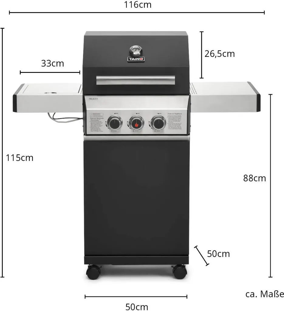Schreibe die erste Rezension für „TAINO BLACK 2+1 Gasgrill-Set Haube Regler Gasgrill Mit Seitenbrenner Gusseisen-Rost Gasgrill 2 Brenner Standgrill Matt Schwarz“ Antwort abbrechen